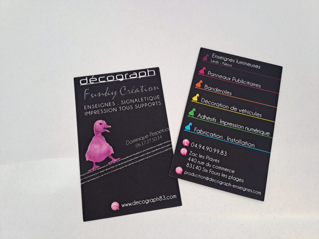 Chez Decograph, imprimerie locale à Six-Fours-les-Plages, nous vous proposons des cartes de visite personnalisées avec des finitions premium pour sublimer votre image de marque. Finitions spéciales pour cartes de visite…